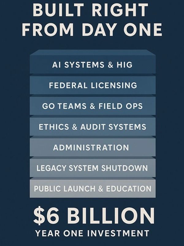That initial investment gave rise to a powerful framework: the Harbor Intelligence Grid (HIG), a centralized federal licensing system, ethics firewall courts, and regional “Go Teams” equipped to respond in real time to market disruption and disaster events. It also funded the creation of public education campaigns, compliance portals for all housing stakeholders, and the formal sunset of legacy systems like ASC and TAF.
