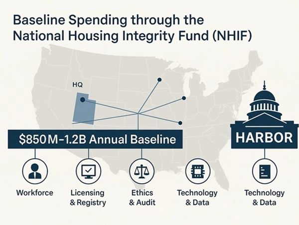 From Harbor’s headquarters in Utah to its network of regional offices, NHIF sustains the salaries of more than 3,500 federal employees and funds the critical infrastructure that makes the system function. This includes the national licensing registry, internal audit courts, and the ethical firewall that guarantees separation between valuation and transaction. NHIF also supports Harbor’s secure data architecture, including contractual partnerships with key vendors such as OpenAI and national MLS networks, while powering public-facing portals and interagency compliance tools.